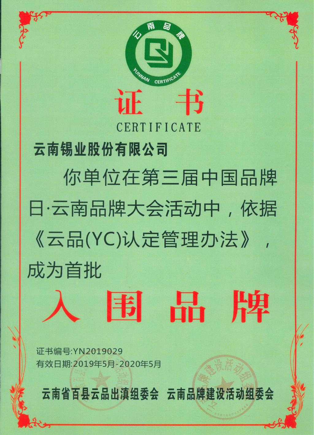 5月10日,錫業股份受邀參加了云南省百縣云品出滇組委會、云南品牌建設活動組委會聯合主辦,在昆明工人文化宮劇場舉行的第三屆中國品牌日﹒云南品牌大會。