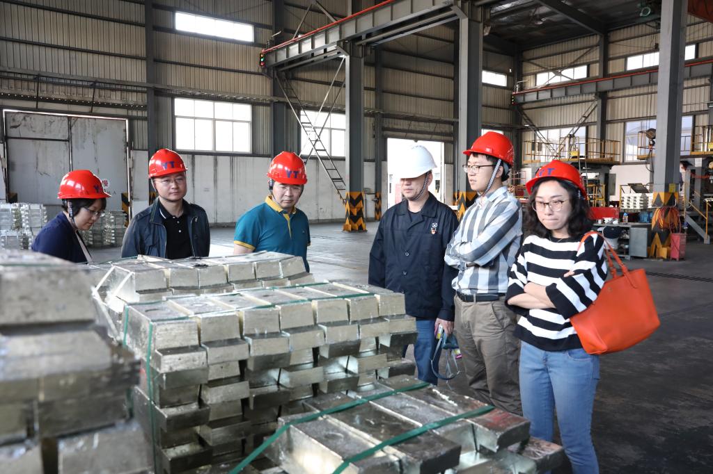 5月16日,中國有色金屬工業協會錫業分會秘書長王中奎、副秘書長李冰心等一行到冶煉分公司、大屯錫礦考察調研。