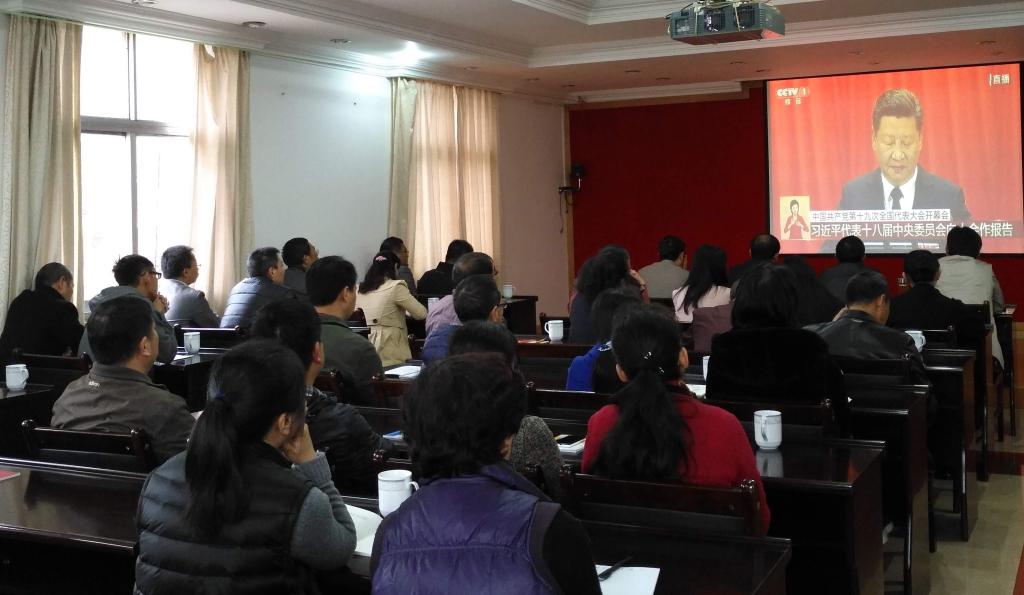 云錫控股公司和錫業(yè)股份機(jī)關(guān)黨員干部職工260余人在云錫賓館報(bào)告廳進(jìn)行了集中收看。兩級(jí)公司領(lǐng)導(dǎo)班子成員與干部員工一起收看了黨的十九大開幕會(huì)盛況。